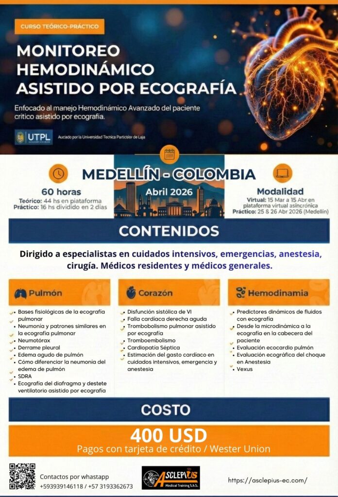 Únete a nuestra formación especializada en POCUS y manejo de pacientes críticos y adquiere las habilidades necesarias para tomar decisiones rápidas y precisas en tu práctica profesional. Aprende de expertos, accede a formación práctica y transforma la atención a tus pacientes.